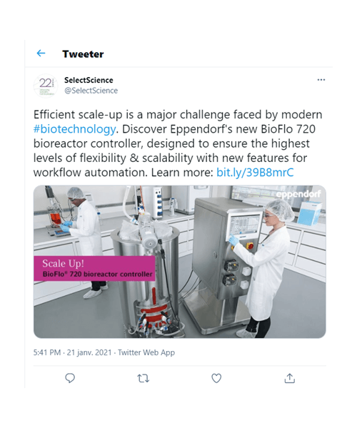 Our customer Eppendorf needed us to run a tactical lead generation programme. One of our trade media suppliers, SelectScience, proposed an innovative option to push Eppendorf’s message on their social media network. We saw this as an excellent opportunity to extend the campaign’s reach to audiences beyond the conventional Trade Media platforms in new contexts.